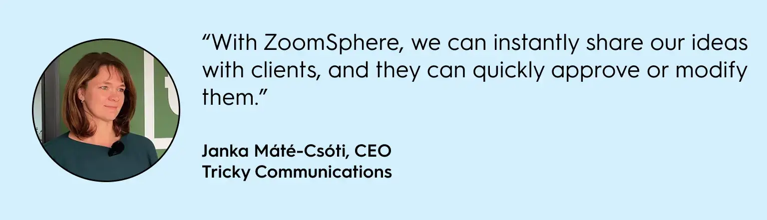 - ZoomSphere Chat: Select the posts from the calendar and send them as a direct message to your client or manager. With the ZoomSphere mobile app, the client gets a push notification and can review and approve on the go.